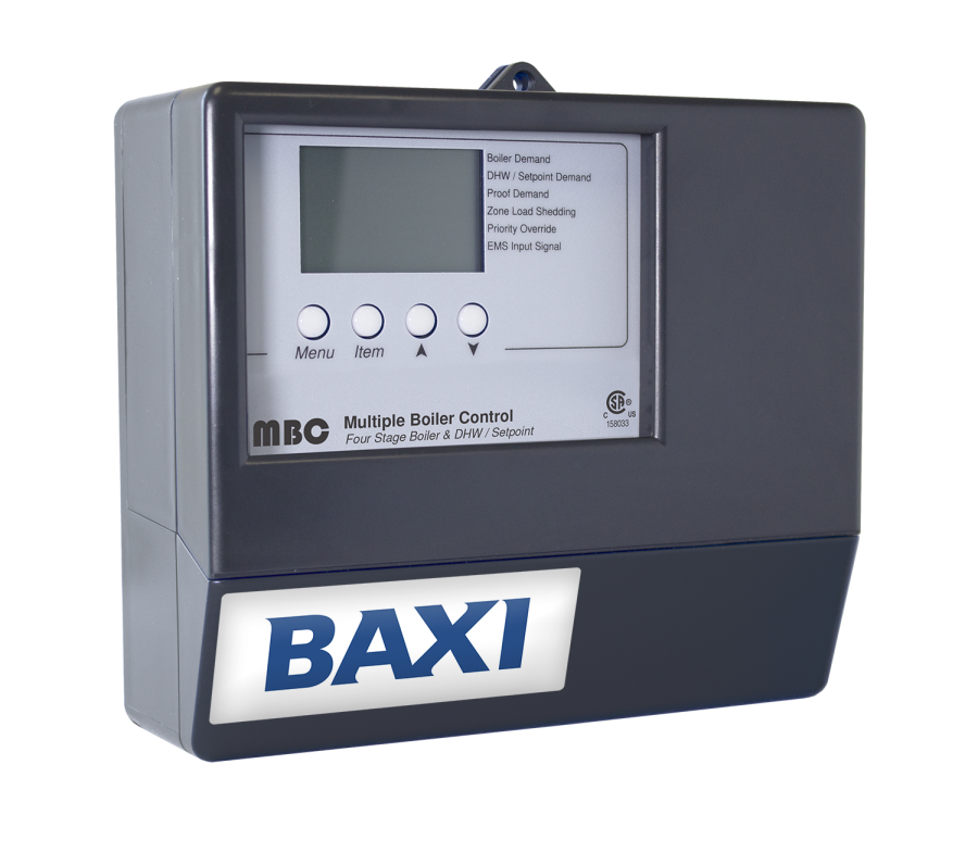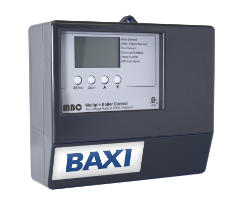 Baxi Launches the MBC (Multiple Boiler Control)New for 2019, the Baxi Multiple Boiler Control (MBC) is ideal for multiple boiler system applications. The Baxi MBC operates up to four boilers and resets the heating system water temperature based on outdoor air temperatures. The Baxi boilers are piped in primary/secondary arrangement and the MBC control automatically selects how many boilers are needed to maintain the required heating load. Selecting multiple Baxi boilers maximizes your energy savings and provides a backup heating source. This product pairs perfectly with the entire series of Baxi Duo-tec and Luna Duo-tec condensing boilers. Key features include: